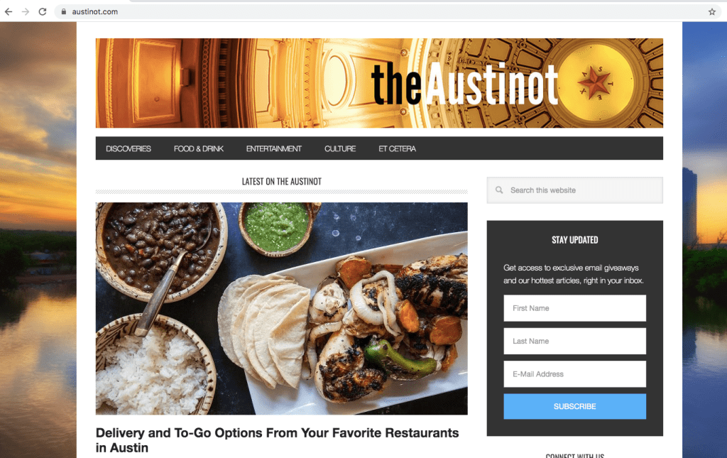 For families, we will provide information about family-friendly activities such as stand-up paddle boarding at Town Lake, Hill Country daytrips and theatre productions at Zilker Metropolitan Park. ” An Austinite Site,” will also present great restaurants and bars around town for all to enjoy.